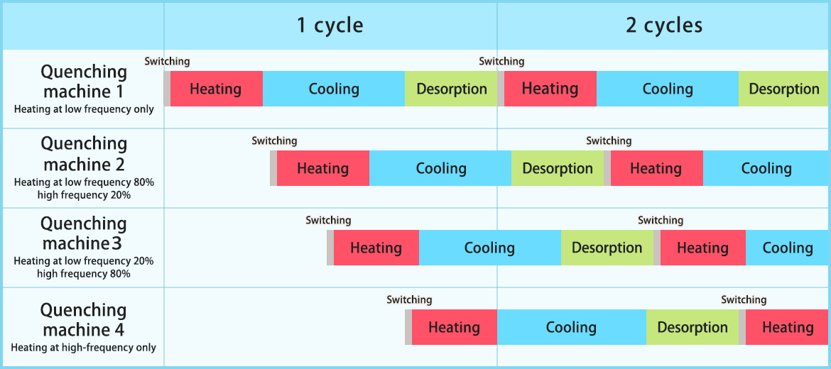 Connecting the HSW system, multi-frequency power supply, capable of realizing a effects of wide range frequency through high-speed switching of two different frequencies via a switch to multiple quenching machines, makes it possible for quenching using optimal frequencies.(Patent pending)