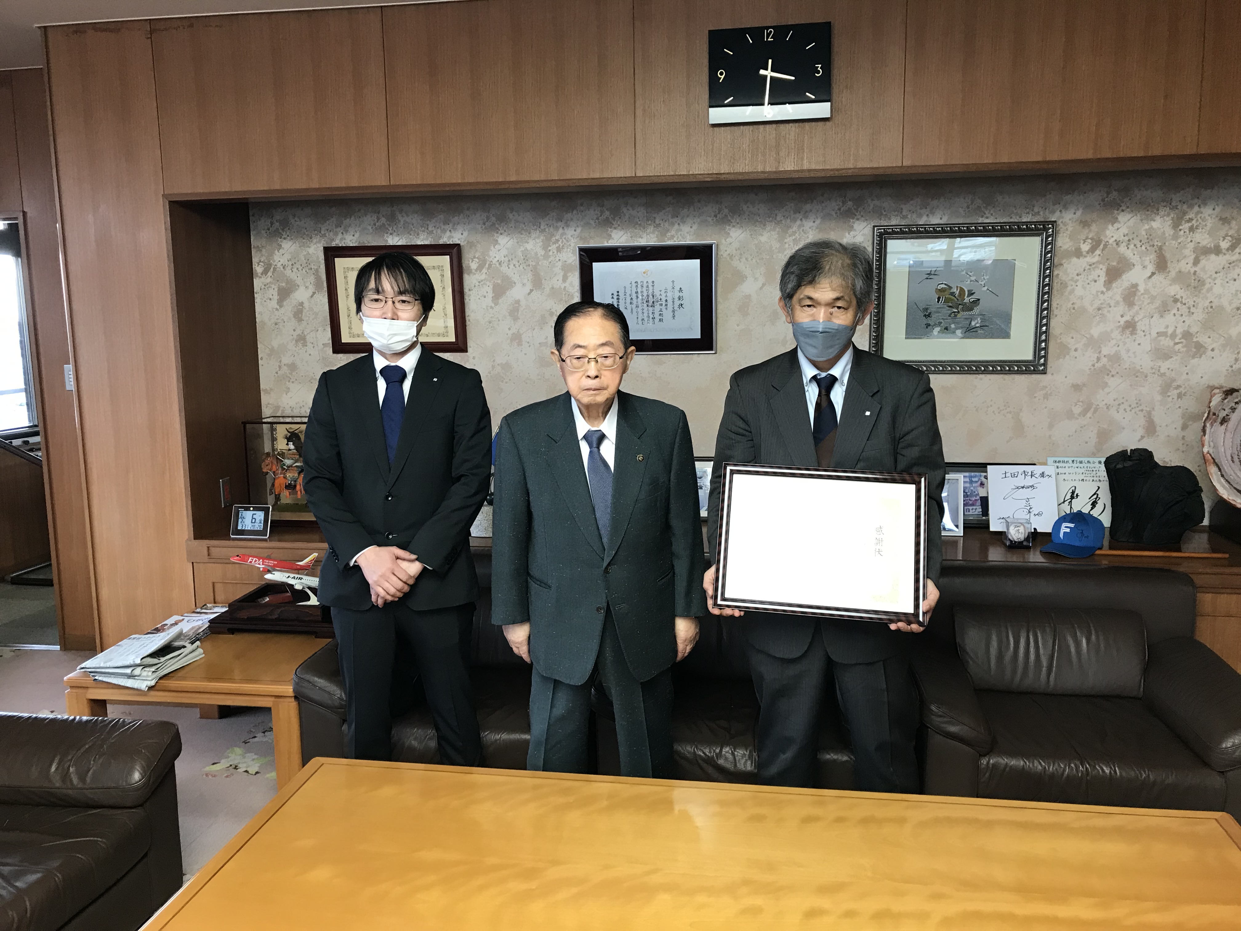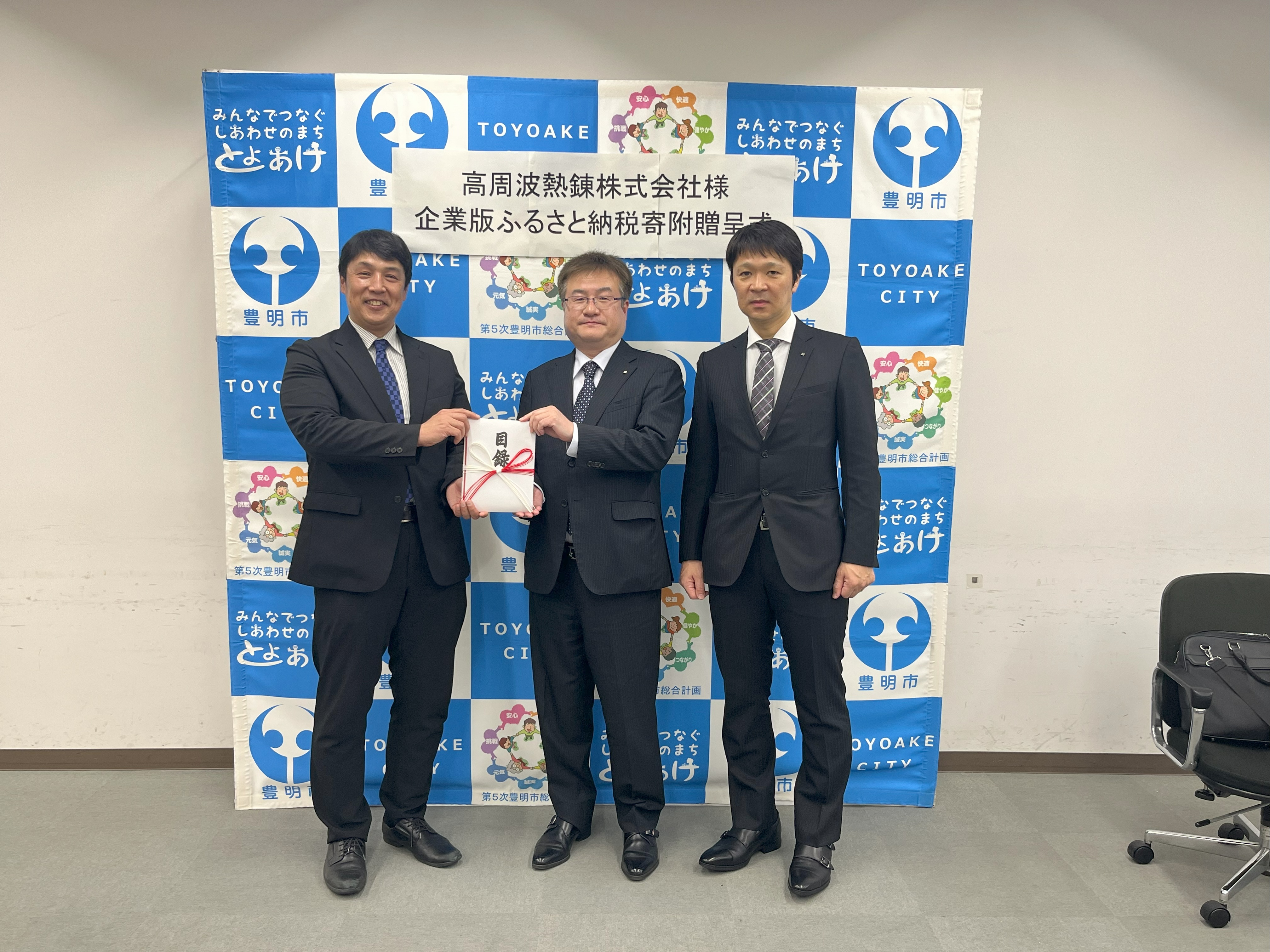 ※1 児玉同課長(左)、土田東根市長(中央)、稲垣ネツレン・ヒートトリート山形工場長(右) |