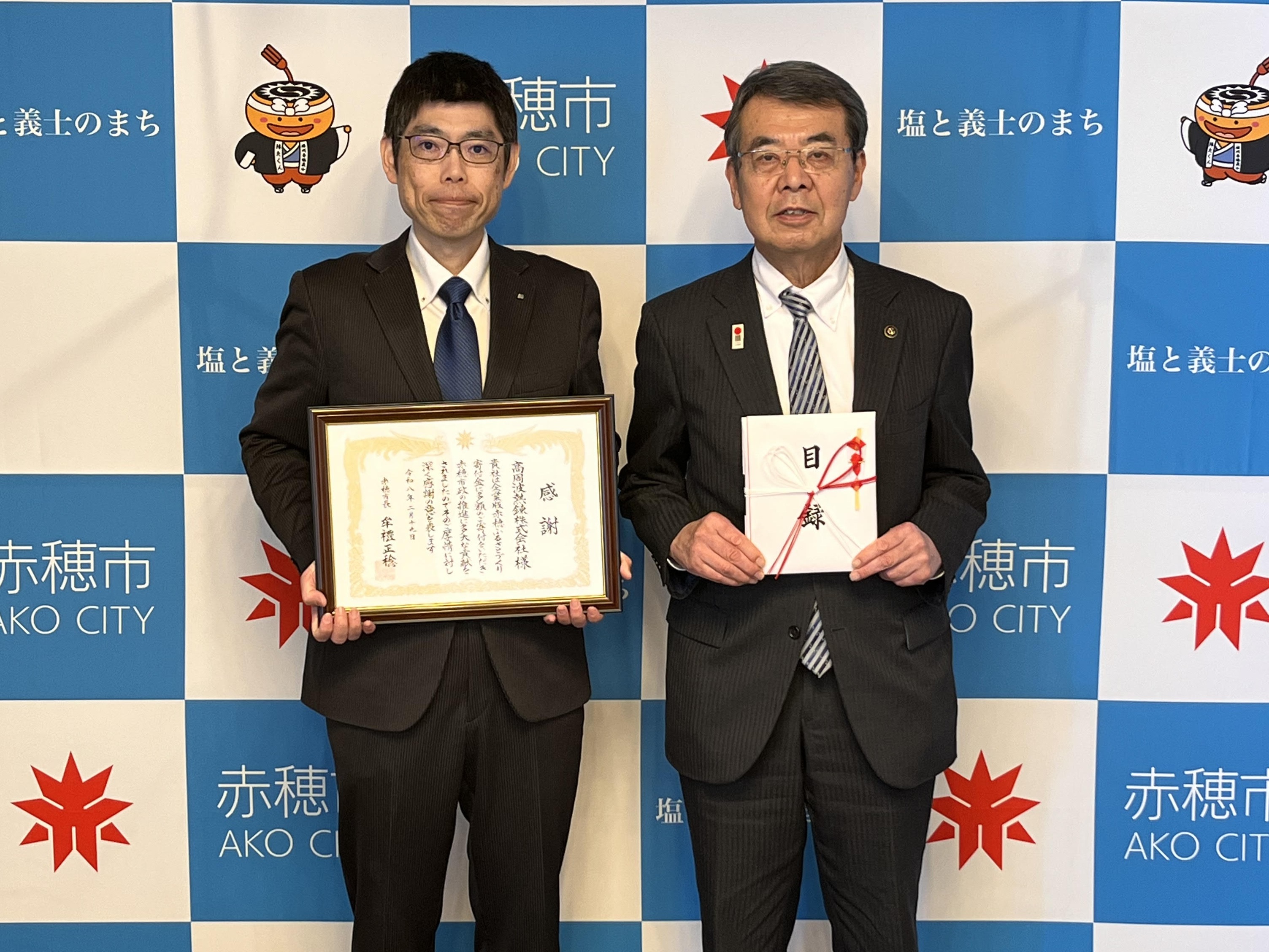 ※6 鬼澤赤穂工場長(左)、牟礼赤穂市長(右)